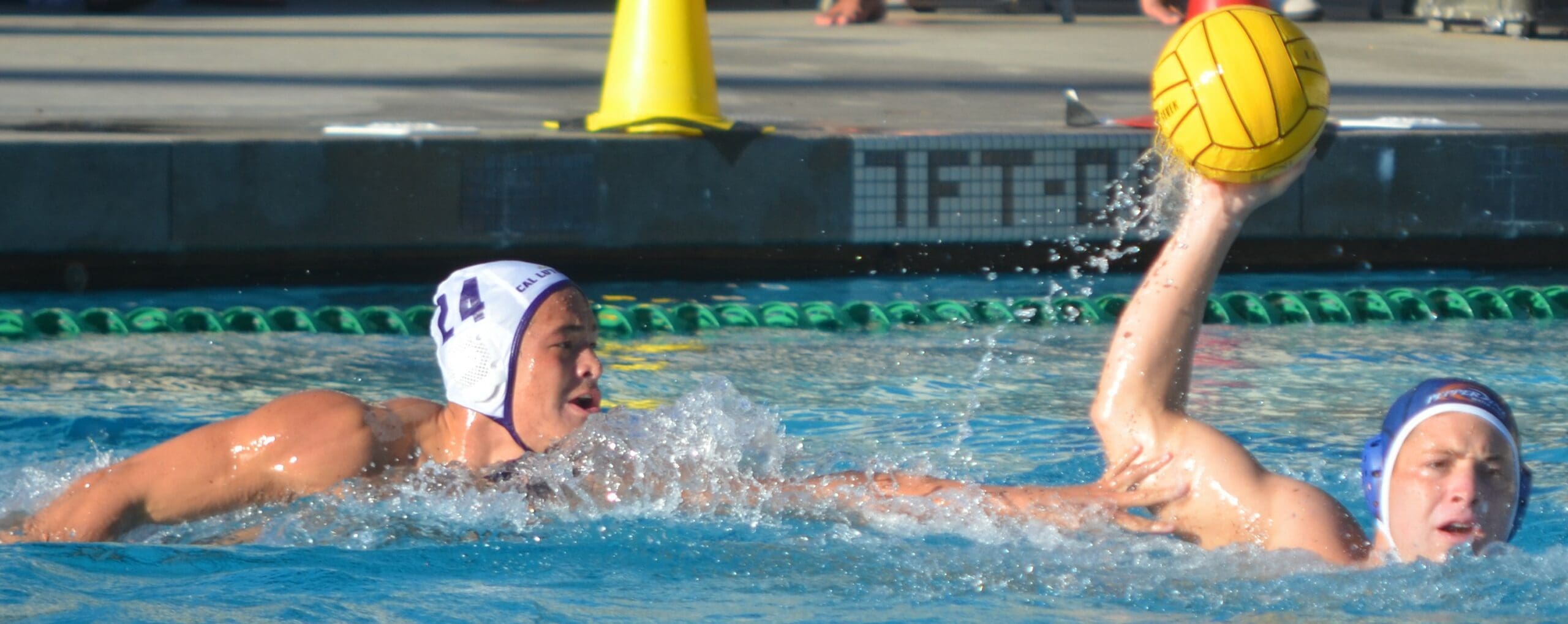 A Waves men’s water polo player looks to pass the ball against Cal Lutheran. Photo by McKenzie Jackson.