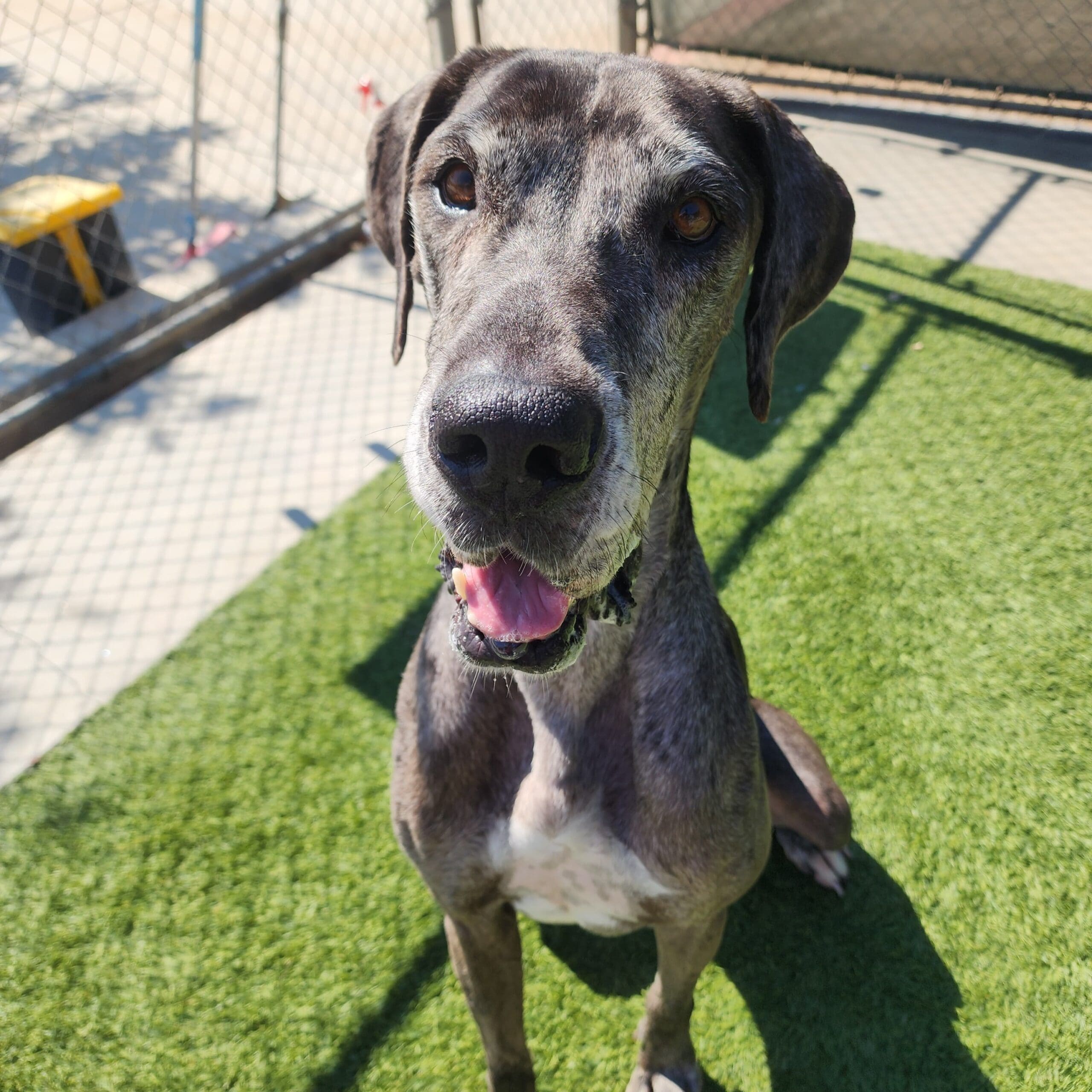 Dakota A5699304 is a 6-year-old Great Dane who has been with us for a while. She’s amazing with people and loves to snuggle. She seems housebroken, walks amazingly on leash, and is non-reactive to others at the care center. Although she was fine during assessment and doesn’t react towards other dogs, she was turned in when things escalated with one of the other dogs in the home, now requiring her to be an only dog.