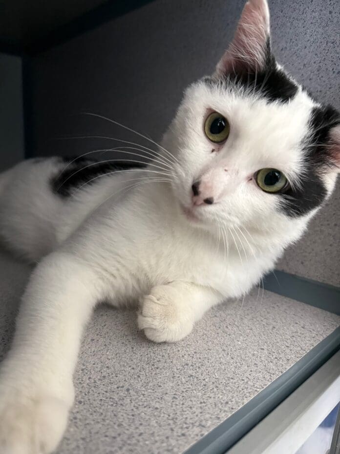 This handsome Domestic Shorthair, with an interesting black and white coat, has been in county care since June, enjoying the free-roaming room, Habikat. At 2 years old, this male cat weighs in at 11 lbs and is ready to go home. Poblano is best suited as the only cat in the household, as he seems to prefer the company of humans over other cats. If you’re looking for an active and energetic companion, Poblano is eagerly waiting to find a forever home.
