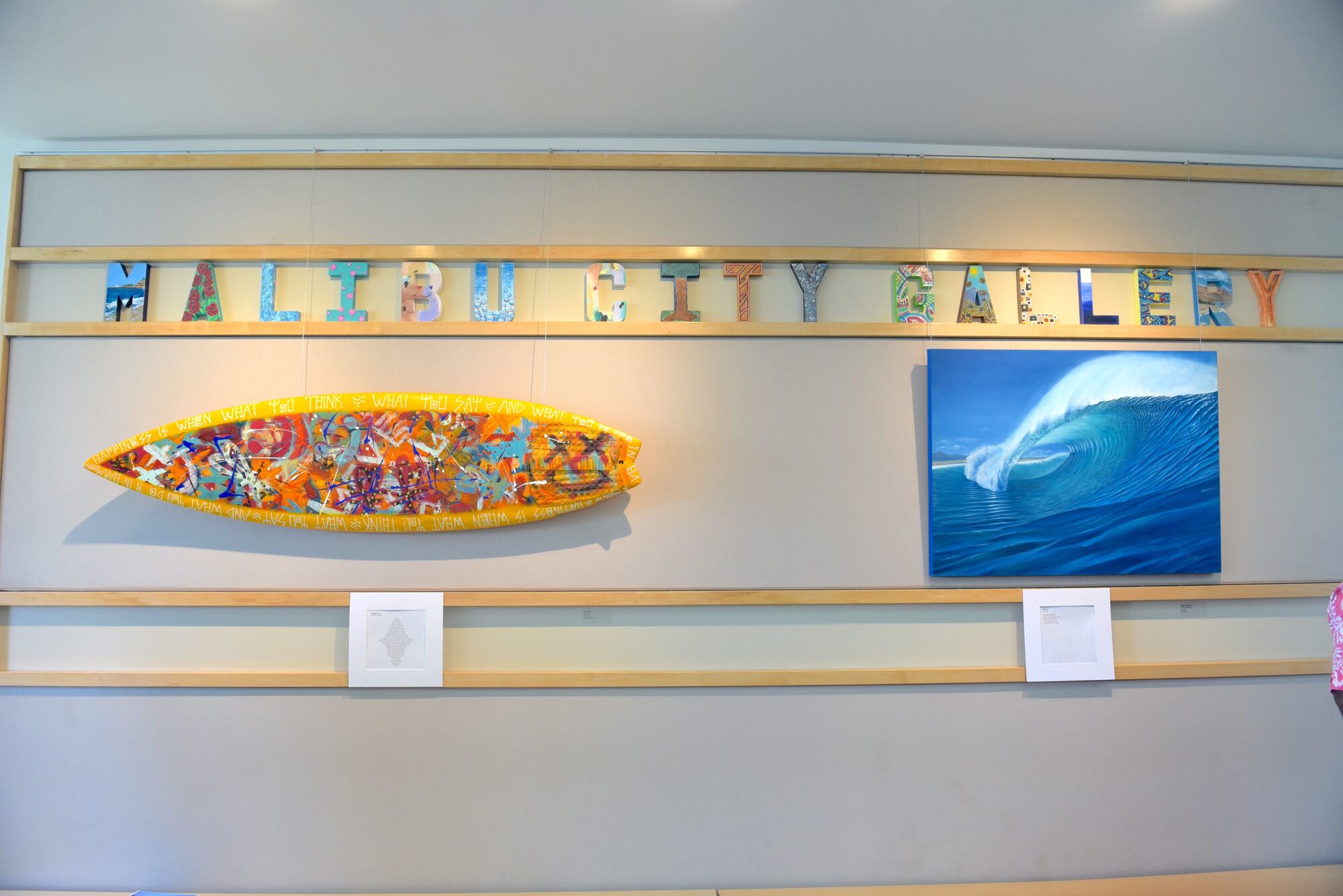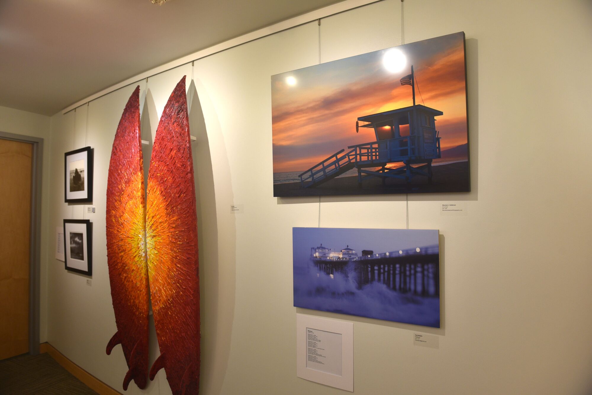 Framed photographs and hand-painted surfboards covered the walls of City Hall Saturday evening for the opening reception of "Art of Surf" the art exhibition organized by the Malibu Arts Commission.
