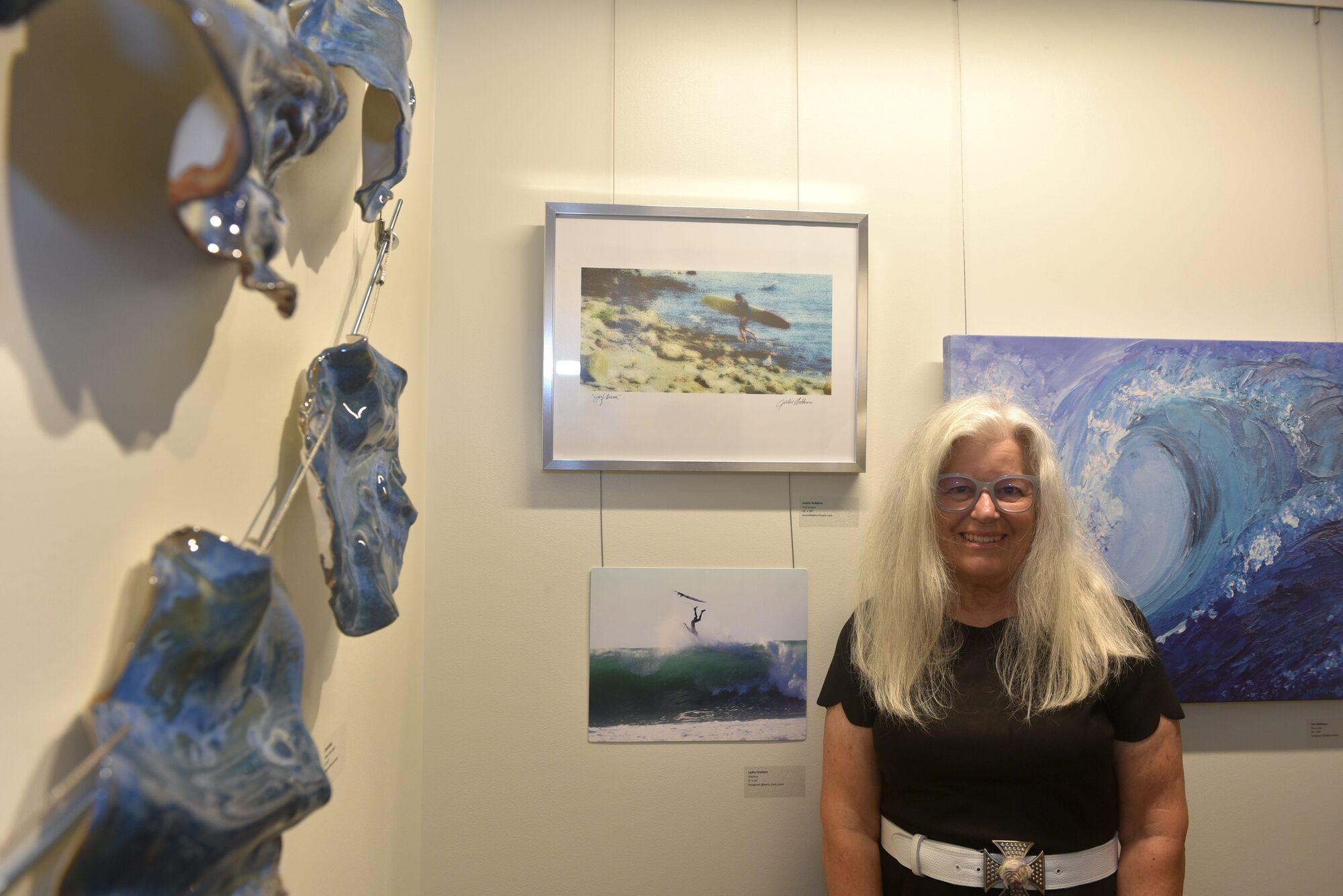 “We narrowed it down to 37 exhibiting artists and keeping with the theme of art of surf there’s a variety of mediums represented in the show so we have oil painting, photography, ceramics, all sorts of different things, but it’s great getting to know the artist and speaking with them today,” Riesgo said. “Getting back together in person and having a multi-artist community show has been great.”