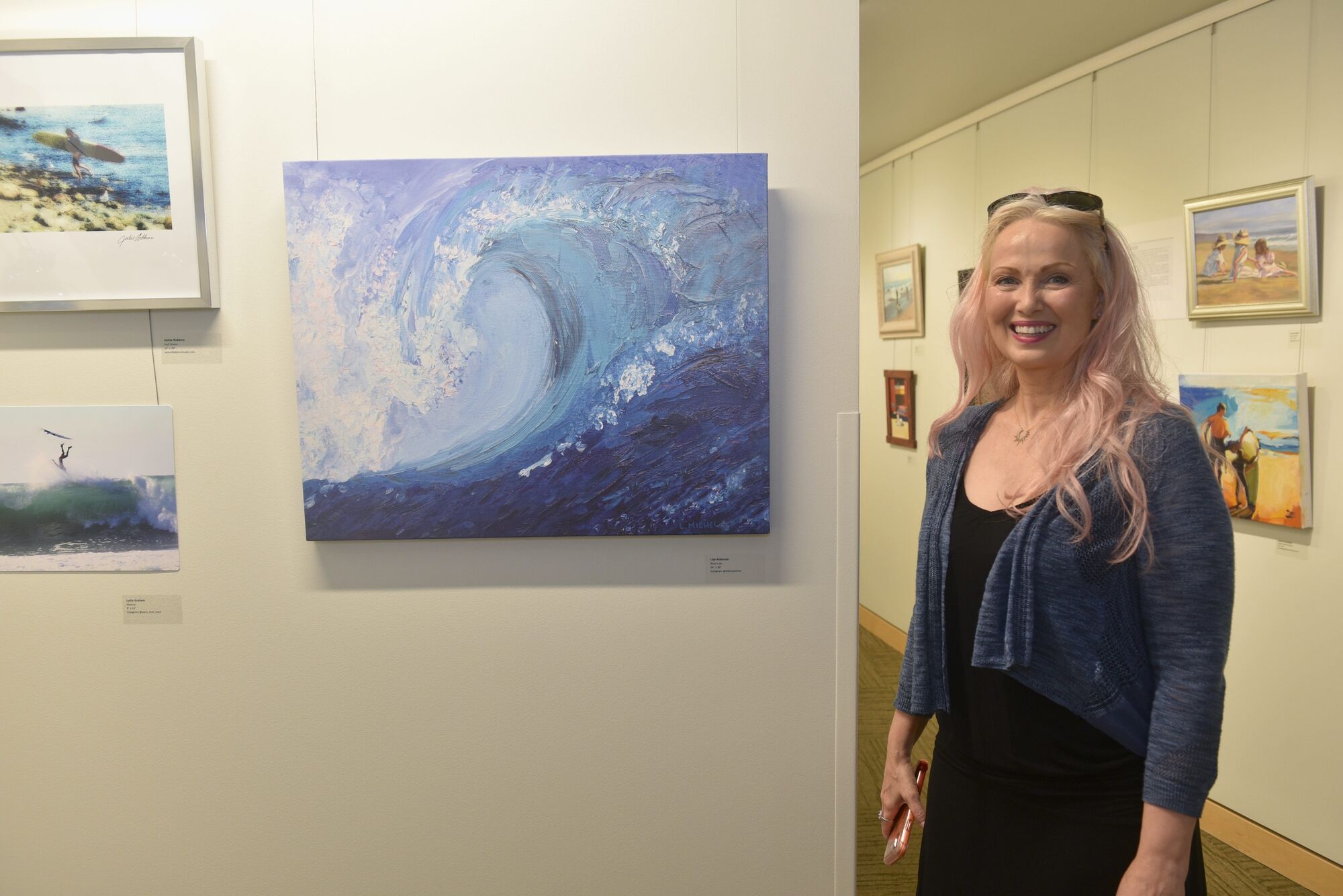 Malibu artist Lisa Atkinson had her painting called "Blue in Bu" on display at the art exhibition and shared why she loves catching waves herself.