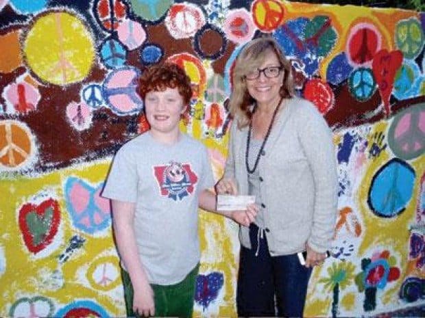 Instead of asking for presents for his 11th birthday, Malibu resident Dylan Strickland requested his guests make a donation to the Malibu Special Education Foundation. Above, Strickland presents a check for more than $1,000 to Laureen Sills, president of the foundation.