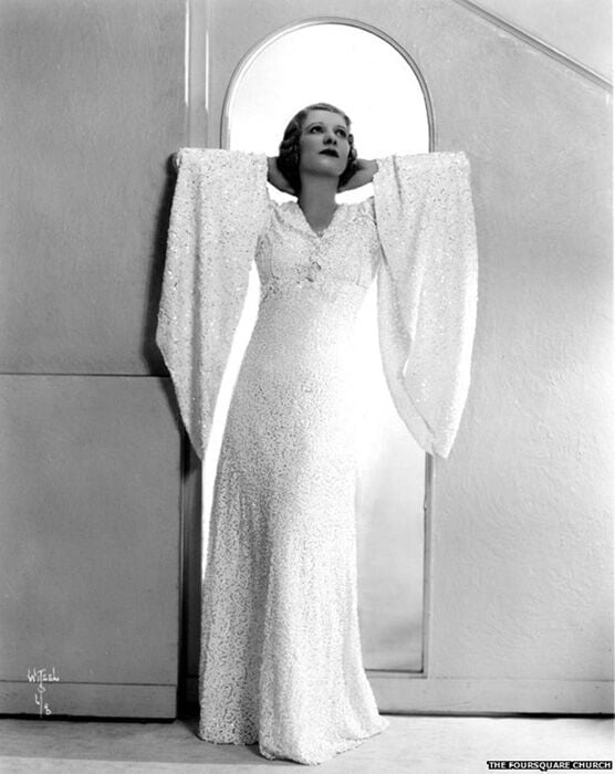 “Mae Waldron … became her usher into the secular world of Los Angeles in the roaring ’20s,” according to the book “Sister Aimee” by Daniel Mark Epstein. “She encouraged her to buy dresses, lingerie and millinery at the best shops. She introduced her to … actors, artists and writers, a society that trafficked in ideas and sensations forbidden to followers of the Foursquare Gospel.”