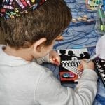 A child colors a menorah at the arts and crafts table at the Chabad of Malibu’s Hanukkah celebration.
