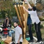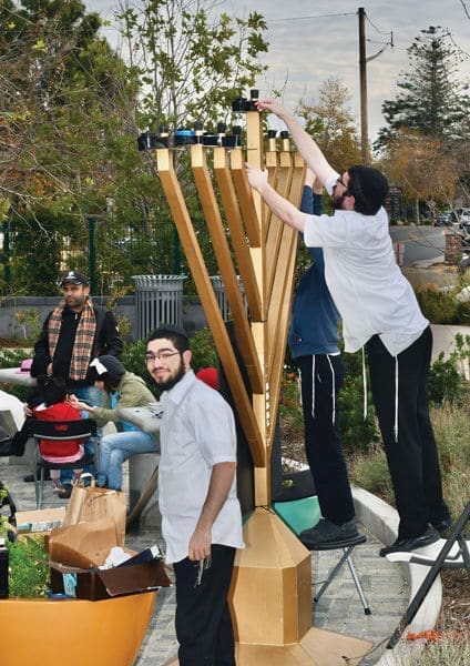 Chabad of Malibu members prepare the menorah for the Festival of Light’s candle lighting at The Park at Cross Creek on Sunday afternoon.Â
