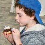 Maya Helmann spreads chocolate frosting on her cookie during the Chabad of Malibu Festival of Lights Hanukkah celebration at The Park at Cross Creek on Sunday afternoon.