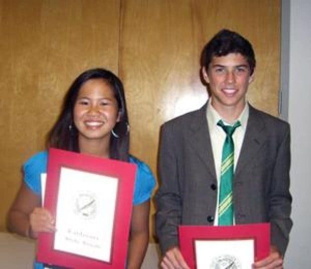 Our Lady of Malibu School students OnNi Zacharia (left) and Ry Christiaansen, local winners of the Annual Optimist Oratorical Competition, recently presented their winning speeches at the club and at district levels of the contest, the theme of which is “For Me, Optimism Is….”