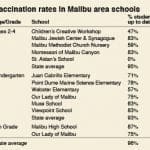 A general rule of thumb used by public health officials is that a vaccination rate of 90 percent or higher is necessary to prevent disease outbreaks or the vulnerability to disease outbreaks. None of Malibu’s pre-school, kindergarten or seventh-grade classes meet that minimum.