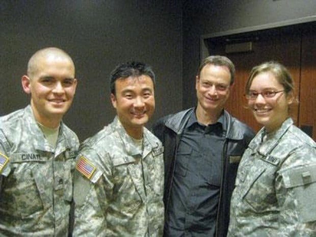 Actor Gary Sinise screened his new music documentary film, “The Lt. Dan Band,” on Nov. 16 for Pepperdine University students. Four Army ROTC cadets from Pepperdine met Sinise in person following the event.