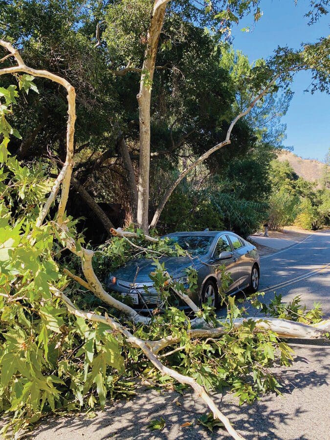 Numerous downed trees were reported in Malibu and Topanga, including a resident who shared a photo of a tree in her backyard that had been toppled by a wind gust.