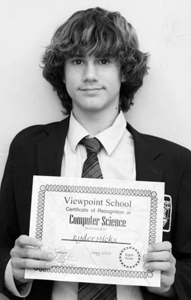 Malibu resident Ryder Hicks, an eighth grader at Viewpoint School, recently received the school’s Award for Excellence in computer science for the past year. Hicks has built numerous local Web sites for local businesses including The Sage Room and Joey Escobar Karate.