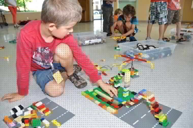 Nikita Ulianov concentrates as he builds his elaborate amusement park during Legos Engineering Camp at Bluffs Park. One of many camps hosted by the City of Malibu this summer, the weeklong camp saw Malibu youngsters construct Lego creations as a means to understand engineering concepts.