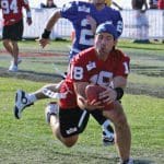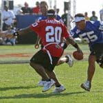 Former San Francisco 49er Roger Craig chases down a camper during a running drill.