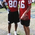 Below: Actor Jason Patric attempts to reel in a pass as “Entourage’s” Kevin Dillon defends.