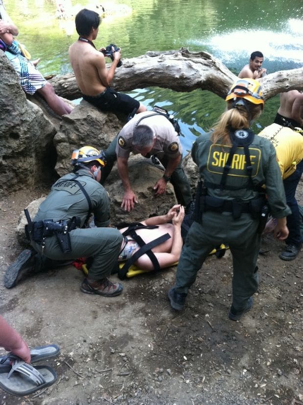 The Los Angeles County Fire Department, Malibu Search and Rescue Team and State Parks workers responded to the scene at 3 p.m. and helped stabilize the Westlake Village resident for transportation to a local hospital.