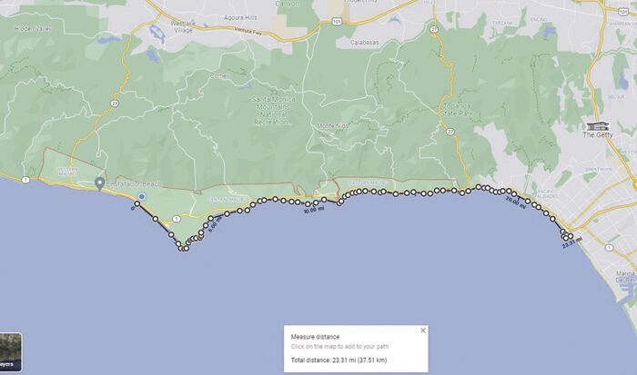 He joked that he probably wouldn’t be able to walk 23 miles, but for some reason was able to do it stand-up paddle boarding. He added that the winds and the currents make it much easier to go toward Santa Monica than toward County Line from Malibu West and that it takes judgment to know when conditions are right to go out.