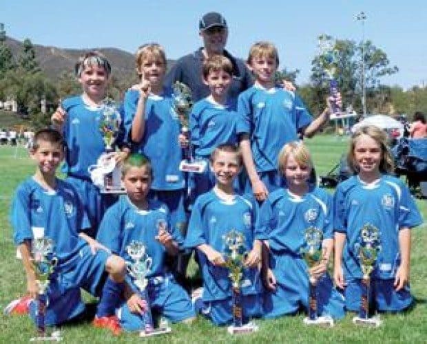 The Malibu Waves U10 boys’ soccer team took first place the weekend before last at the Patriot’s Cup Tournament in Newbury Park. Pictured, back row: Coach Steve Wesson. Middle row, from left: Sky Petretti, Seamus Harrington, Griffin Godsick, Carson Rudd. Front row, from left: Oscar Adler, Arlo Jensen, Kenny Averna, Jake Wesson, Rocky Morris.