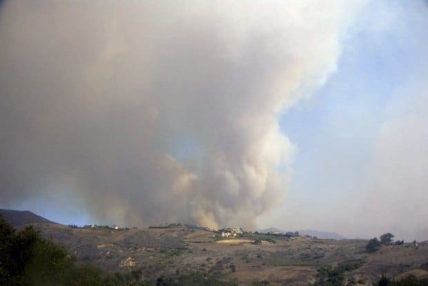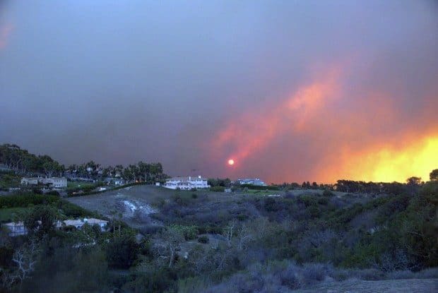 A view from Pacific Coast Highway west of the fire as the sun rises.Photo by Jim Manera