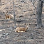 Two deer lie on burned out land in Latigo Canyon after the fire. Photo by Janet Laird / TMT
