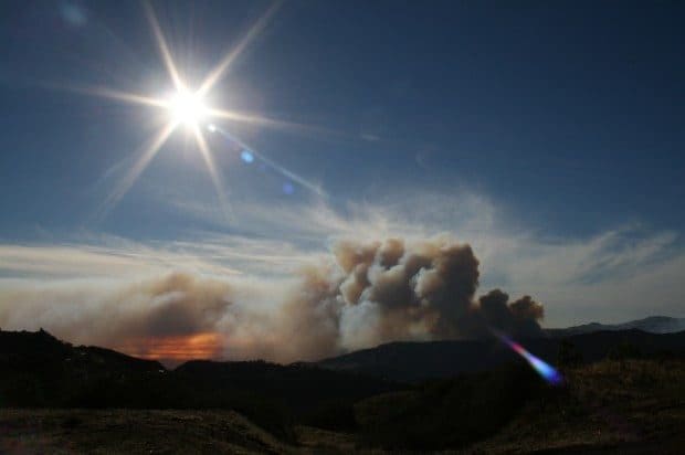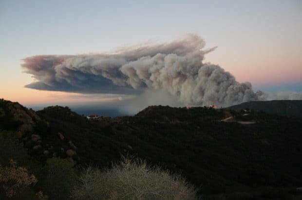 Corral Canyon fire as seen from malibou lake