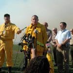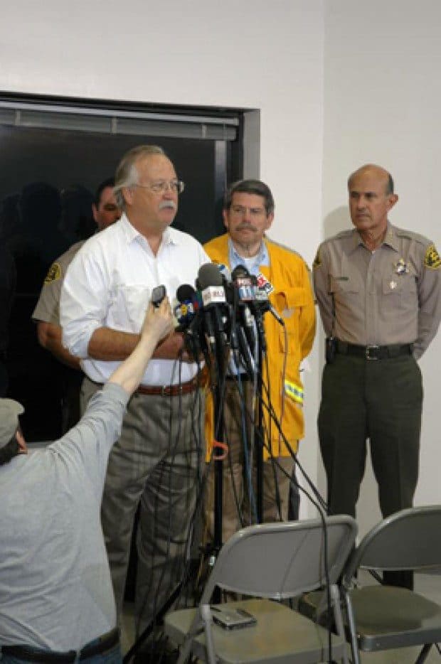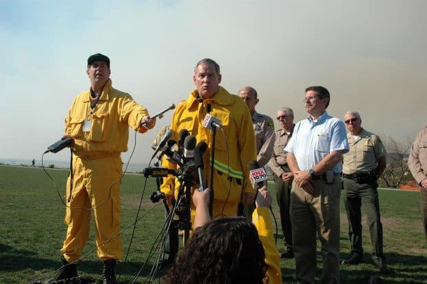 Press Conference at Bluff’s Park. LA County Fire Chief Michael Freeman, Supervisor Zev Yuroslavsky, Malibu Mayor, Jeff Jennings and Sheriff Lee Baca.