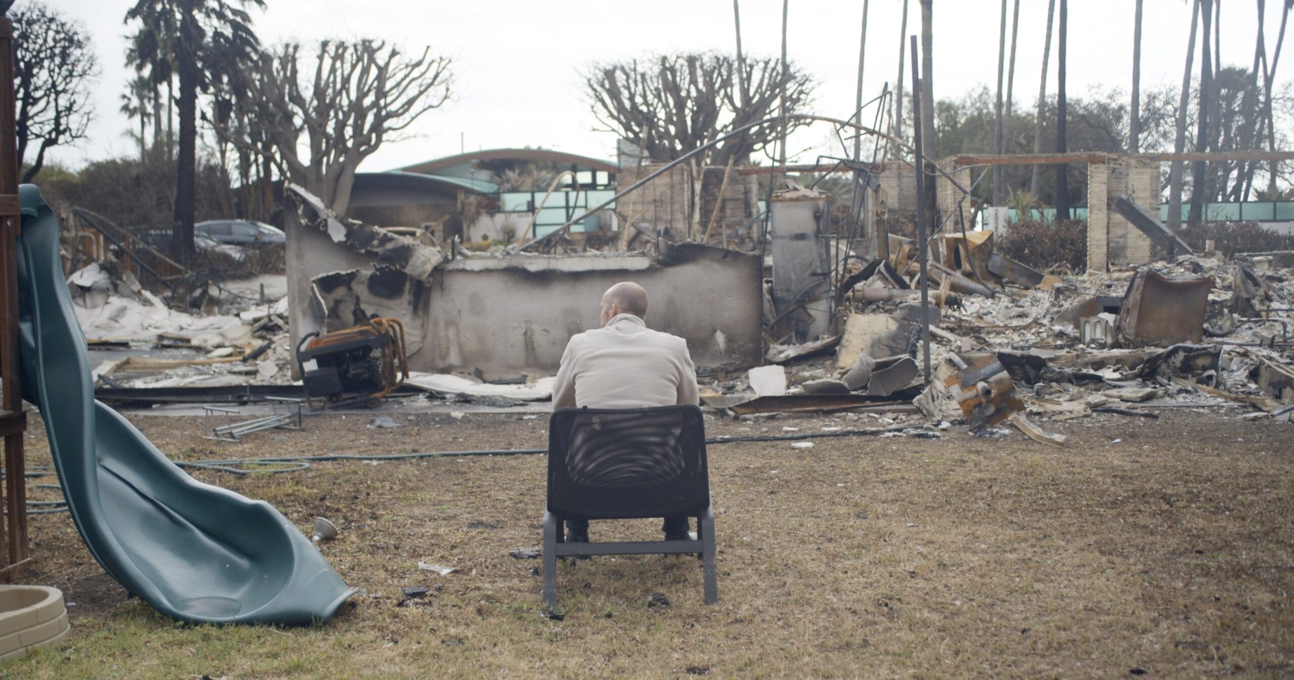 Arno Koch of Malibu sits in front of his Big Rock home the was destroyed by the Palisades Fire in this scene from “Big Rock Burning: An Untold Story of the 2025 LA Fires.” The documentary recounts the story of the Big Rock area, which was obliterated by the January fire.