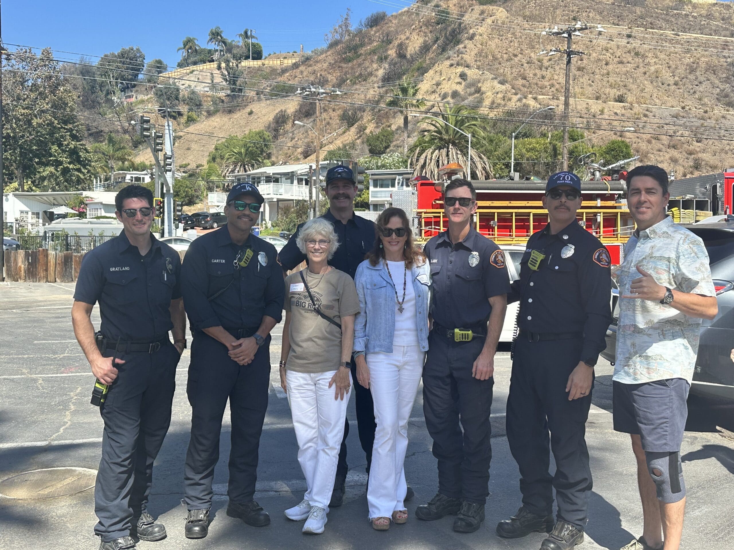 The first responders at the gathering all seem to consider their dangerous jobs as just another day at work. For Fire Captain Malcolm Dicks, the Palisades Fire will leave a lasting impression. He saved a life and made a lifelong friend when he rescued an event organizer and Big Rock resident Patty Phillips and her dog. The two got trapped in their car while fire was raining down on them. It was Dicks, without fanfare, who drove back up into the canyon with Phillips’ husband to rescue the two and then disappeared into the night to continue firefighting. Eventually, Phillips tracked him down to thank him. And Phillips’ son, who now wants to be a firefighter, wrote Dicks a letter saying, “Thank you for saving my mom.” The 30-year firefighter stated the letter touched him. “You don’t have another mom. It’s one of those things that hit deep to me,” Dicks said.