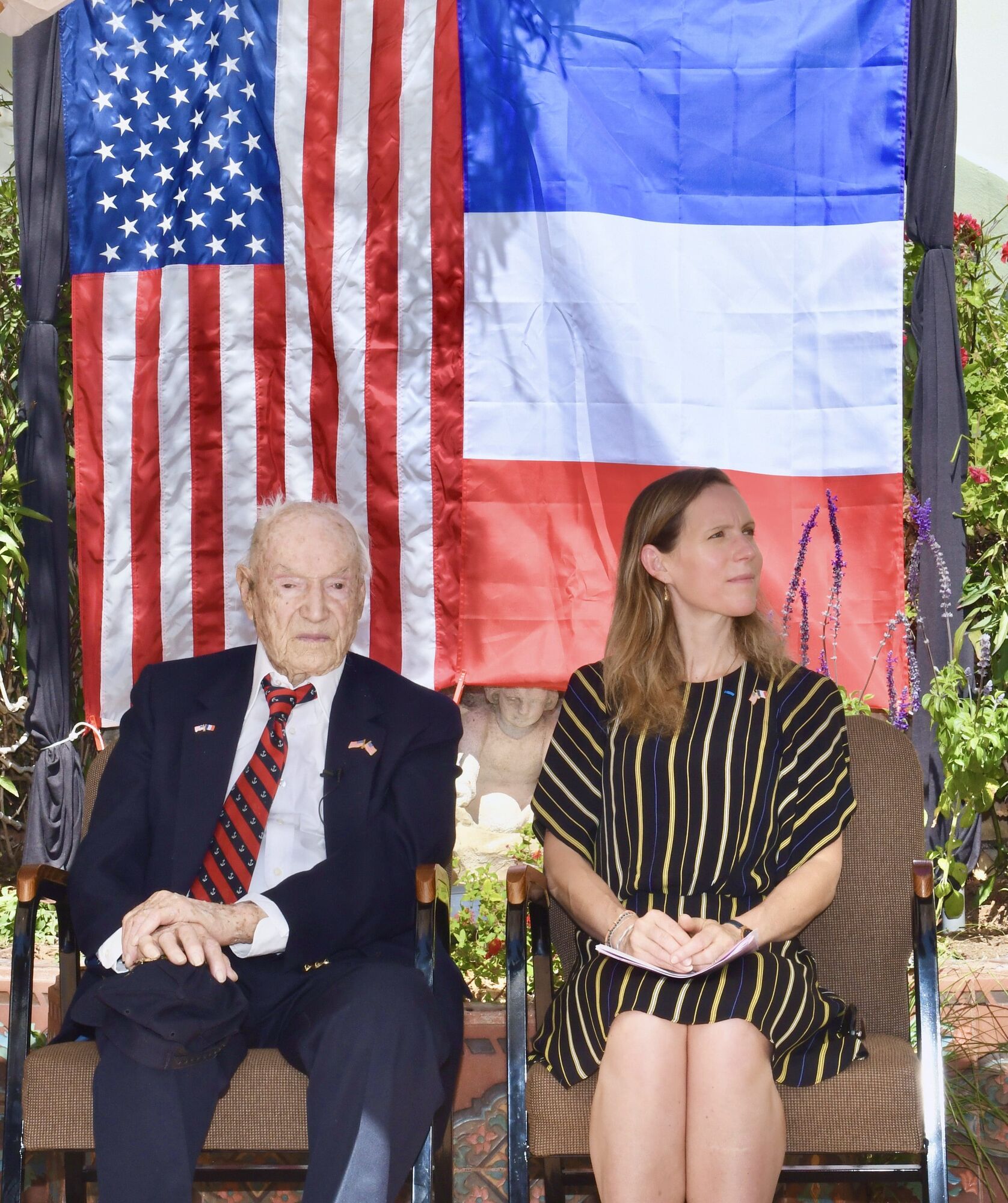 The ceremony honoring Copenhafer took place at Serra Retreat July 10 under crystalline skies with French and American flags adorning the road up to the center’s courtyard in appreciation of the French government’s recognition of the World War II hero. The consul general of France in Los Angeles, Julie Duhaut-Bedos, spoke of her country’s honor to Copenhafer for his service to France.