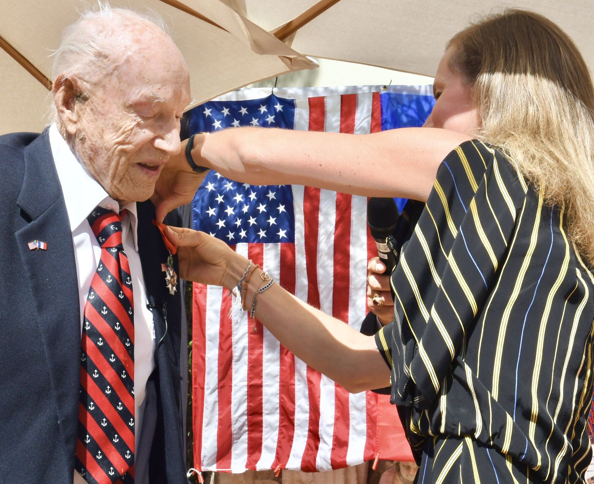 "We owe you our freedom. We are truly grateful for your duty, courage and self-sacrifice. I would like to express our gratitude. Merci,” the Consul General proclaimed as she then pinned the prestigious medal on the honoree.