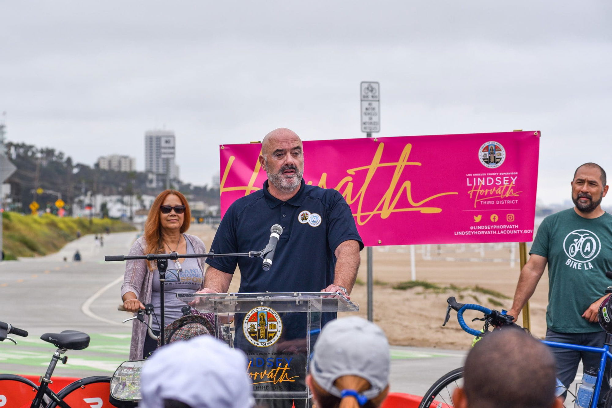 Los Angeles County Supervisor Lindsey P. Horvath, County Public Works, and Beaches and Harbors held a ceremony on Wednesday, May 24, to celebrate the bike trail improvements at Marvin Braude Trail at Will Rogers Beach.
