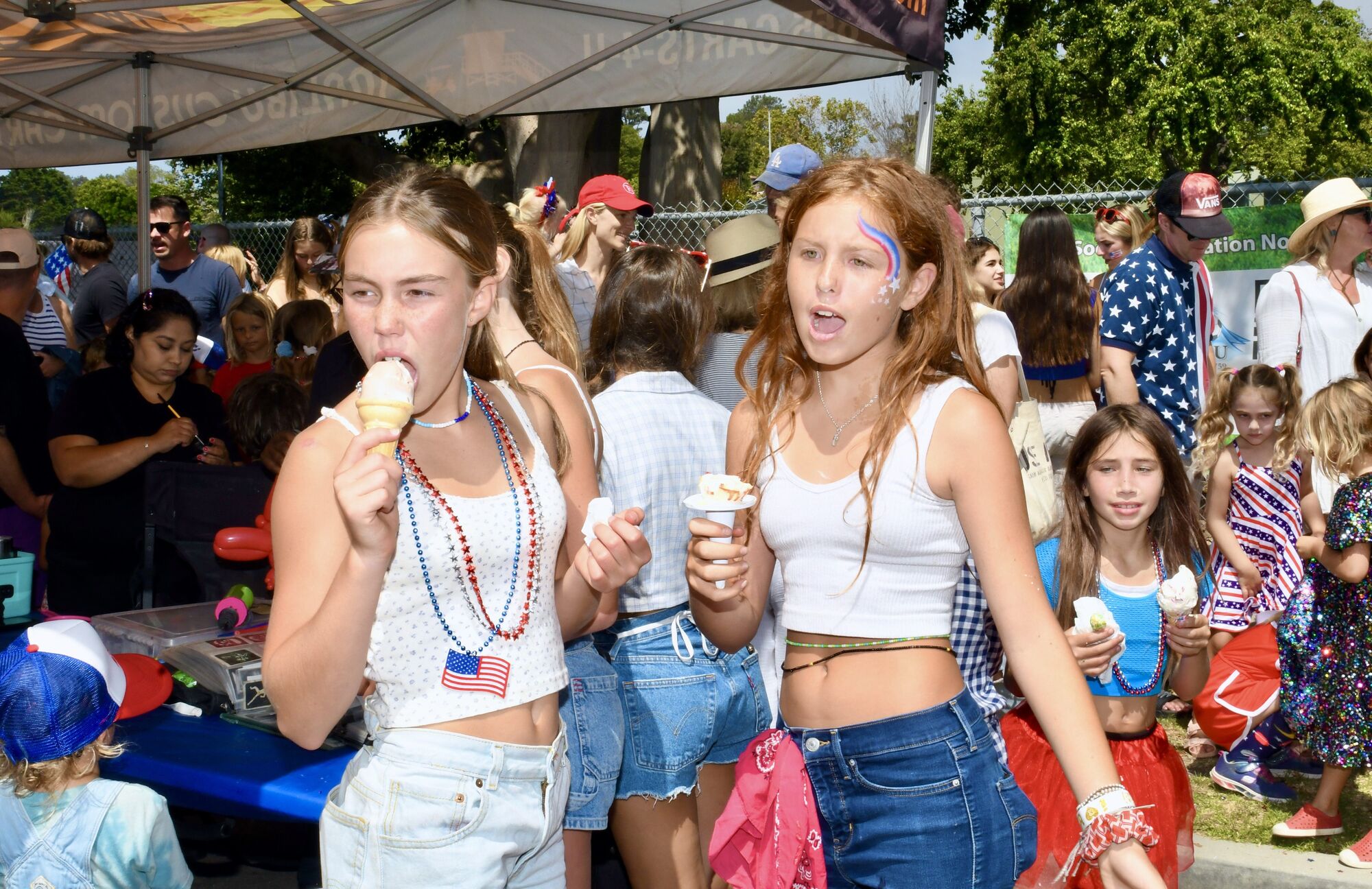 “Everything went up in price. We weren’t able to come up with enough money to hold the actual picnic itself. This year people didn’t want to donate. We could not generate enough money this year for the band, tacos, and all the extras,” according to Randall. Plans were scaled back at the last minute to scrap the picnic but still have refreshments for kids and adults. A Mr. Softee truck distributed more than 300 ice cream treats, and a face painter and tattoo artist spent hours decorating kids. Thanks to Pavilions, free watermelon slices or “Malibu hydration wedges” were enjoyed.