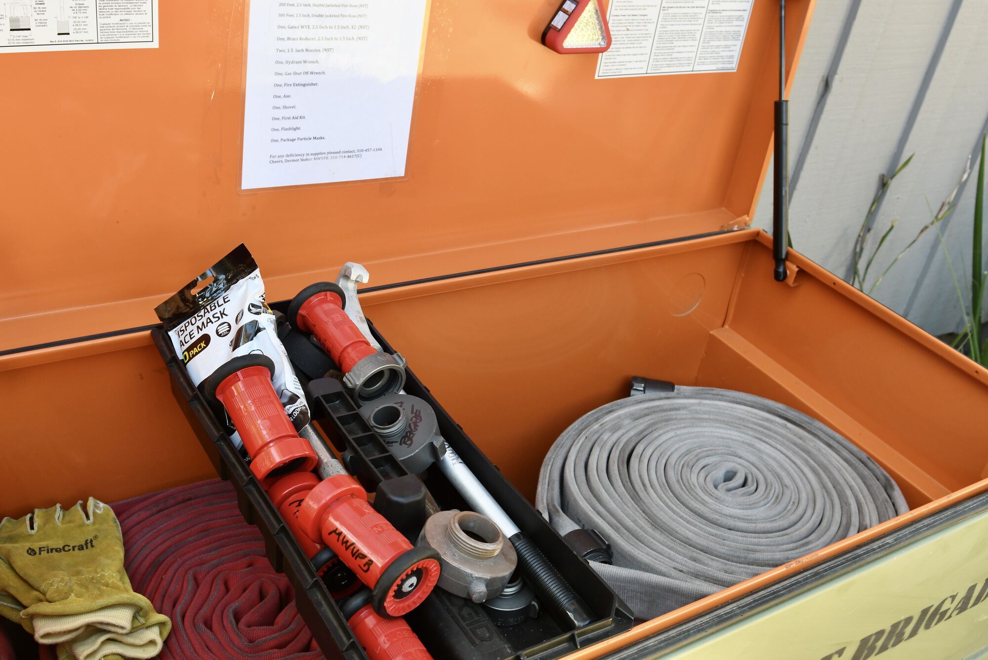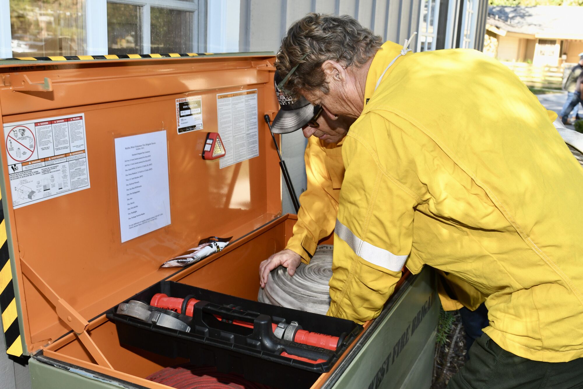 During the Woolsey Fire, the brigade was fighting the fire with shovels and garden hoses, and that’s all changed. The Fire Brigade Boxes are new since Woolsey, and have been installed and stocked with the proper firefighting equipment since 2019/20. More of the boxes are being added as needed; and being standardized as much as possible — they all have the same keys, the same thread sizes, and the same hose fittings, so everything is interchangeable.