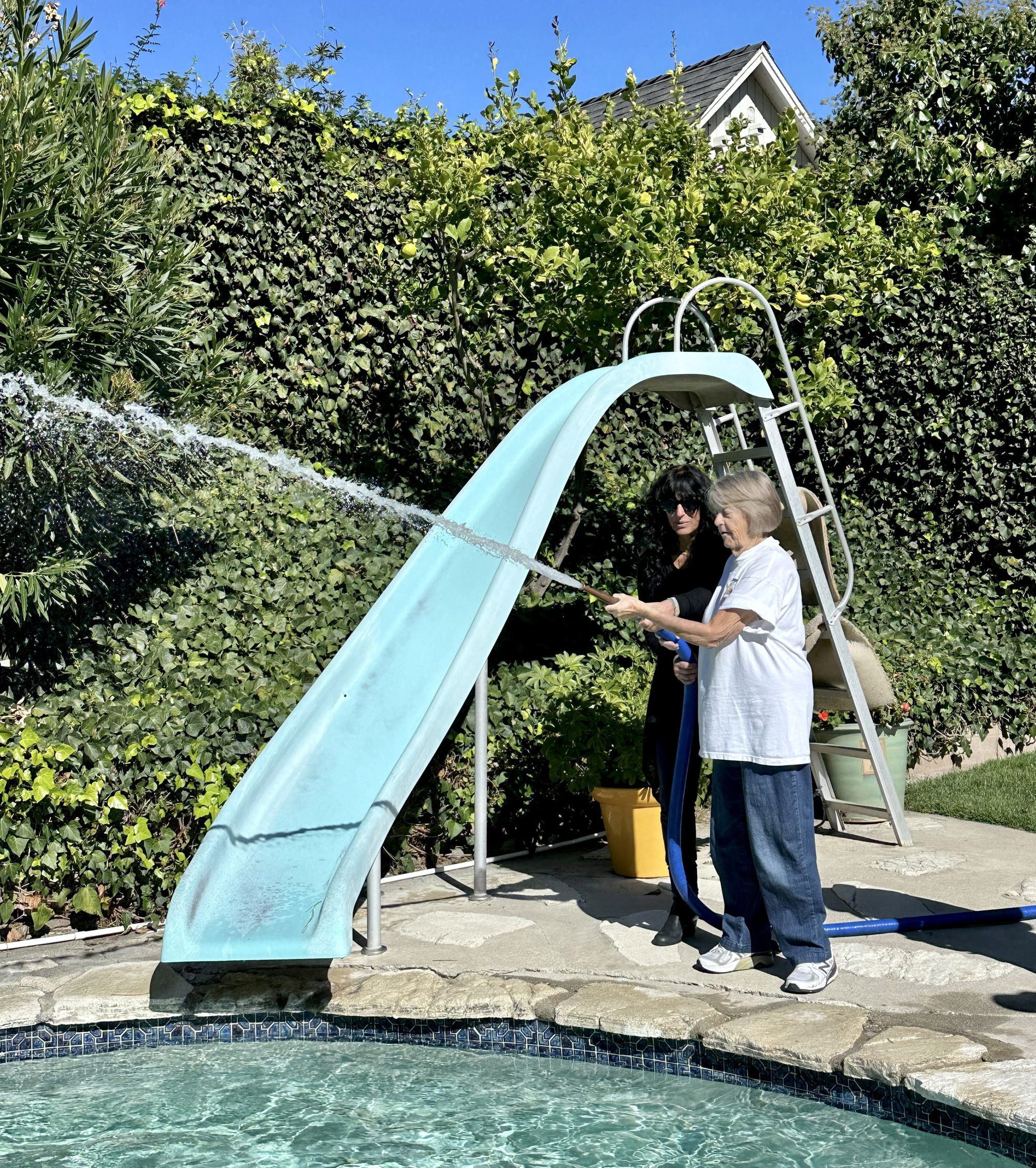“We’ve been encouraging people with pools to get pool pumps,” Marderosian continued. “They’re 25,000-gallon water sources. [The brigade] also bought a few mobile pool pumps [which are kept at resident’s houses, ready to deploy if needed]. If someone wants to buy a pool pump, I show them what to get and how to set it up.”