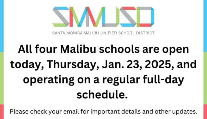 Malibu schools are open today, but Malibu Elementary School will begin the day without power. Officials are closely monitoring ongoing red flag warnings due to fire weather conditions. Families are urged to check their email for updates throughout the day.