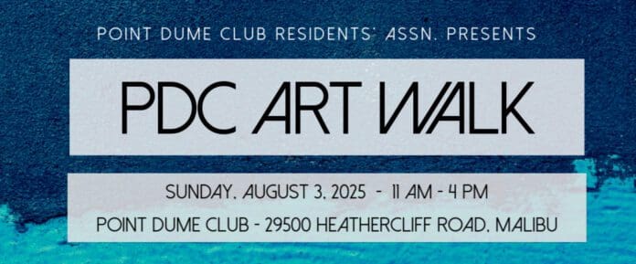 The Point Dume Club Art Walk is Sunday, Aug. 3, from 11 a.m. to 4 p.m. at the Point Dume Club, 29500 Heathercliff Rd.